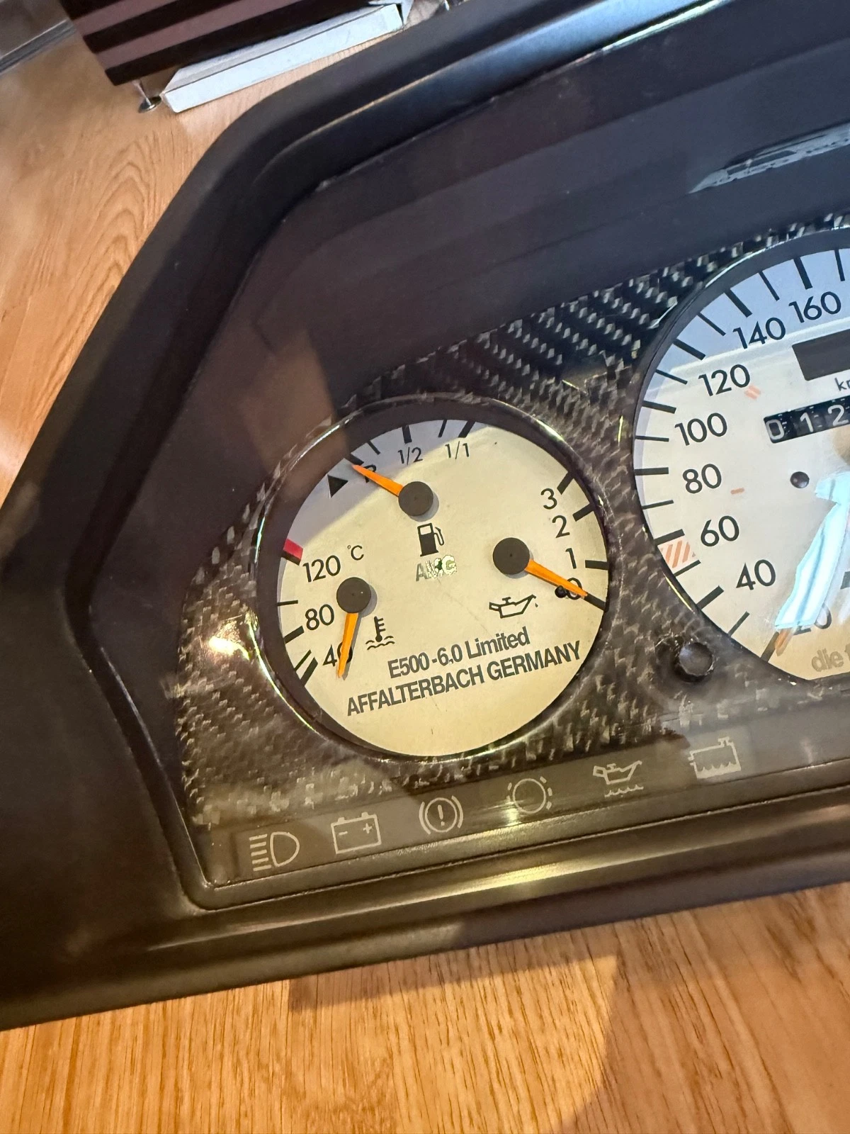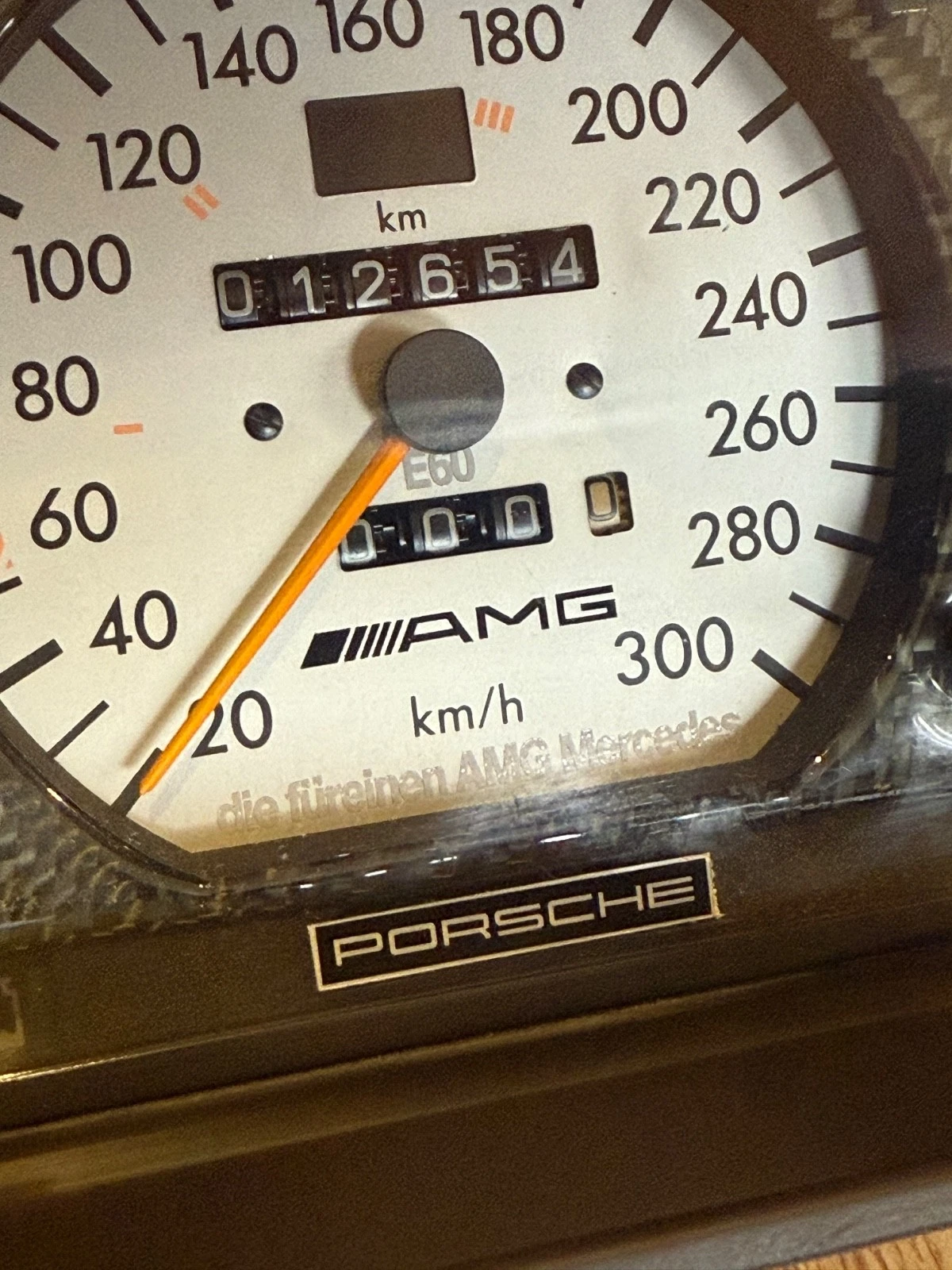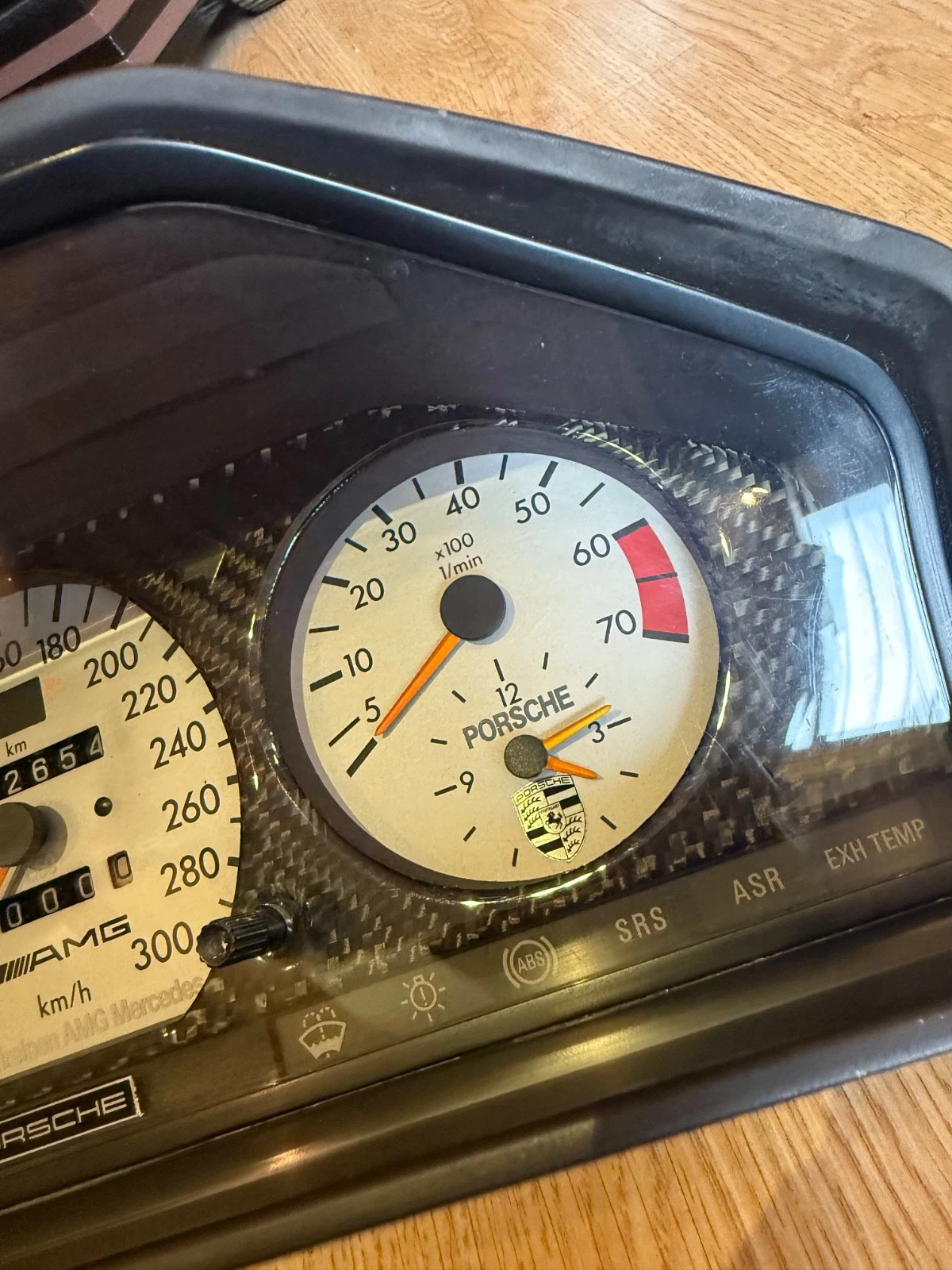 Rare Silver yes not white just looks like it in pictures 300km/h AMG japan special order cluster from a 6.0 Limited. This is a electronic drive meter so for W124 500E! Not for 300ce and other models. Has lots of extras as porsche carbon bezel and porsche clock