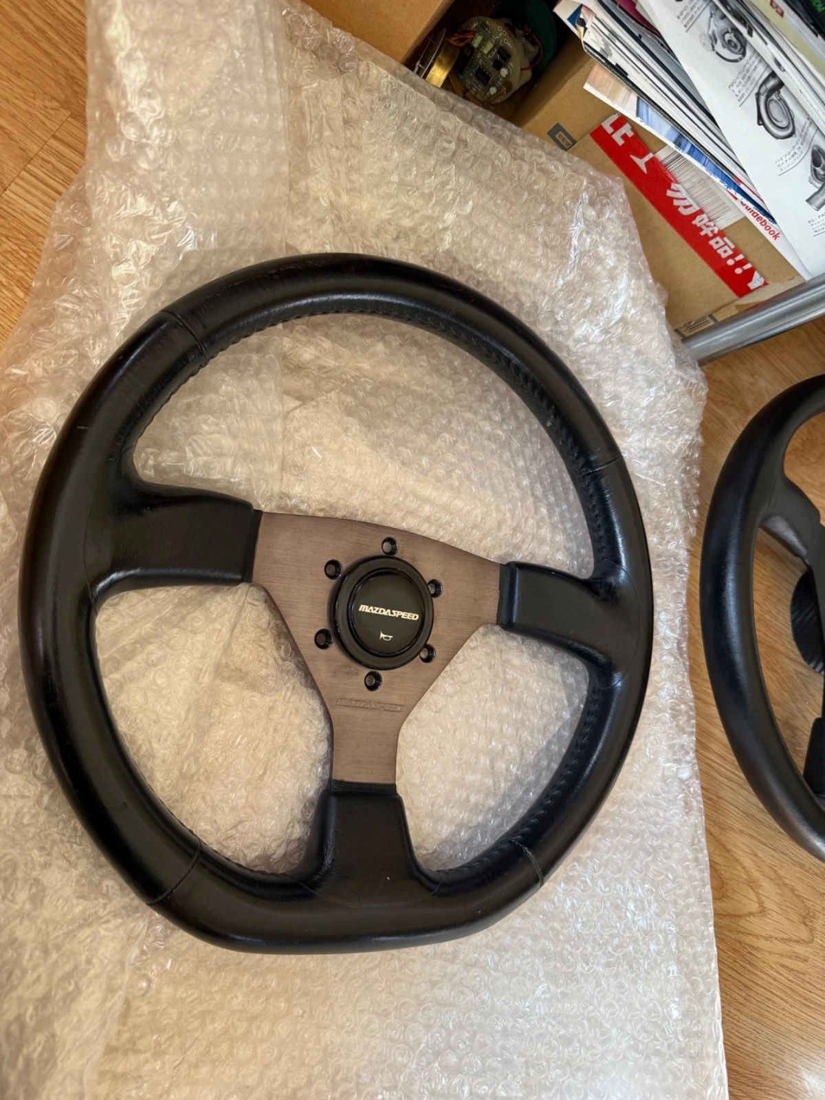 Ultra rare Mazdaspeed D-cut 35cm steering wheel with horn. The rarest steering wheel sold by mazdaspeed