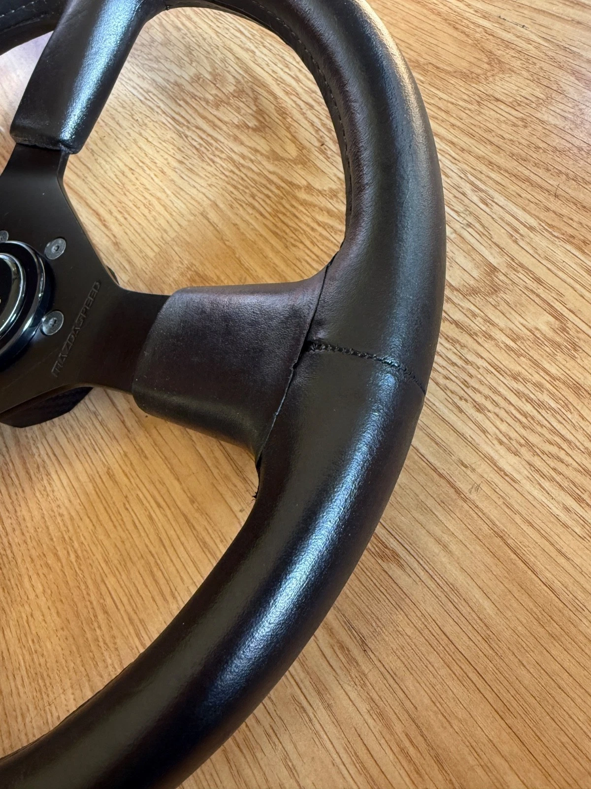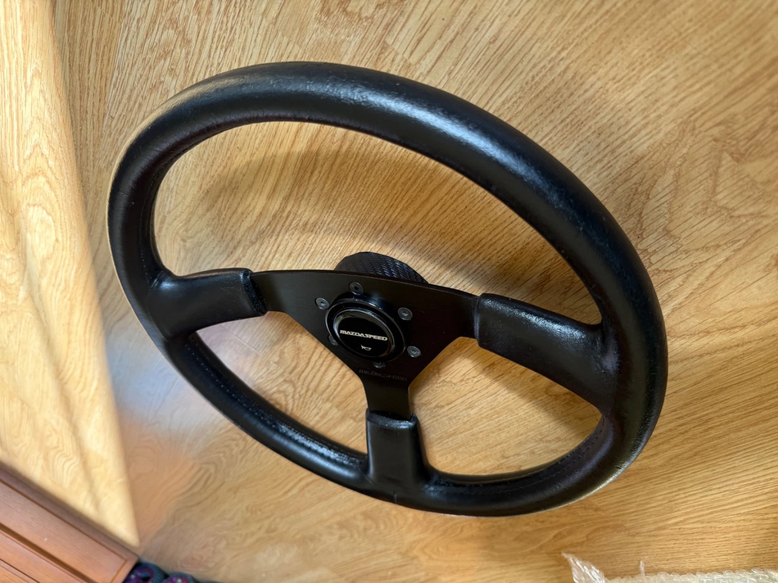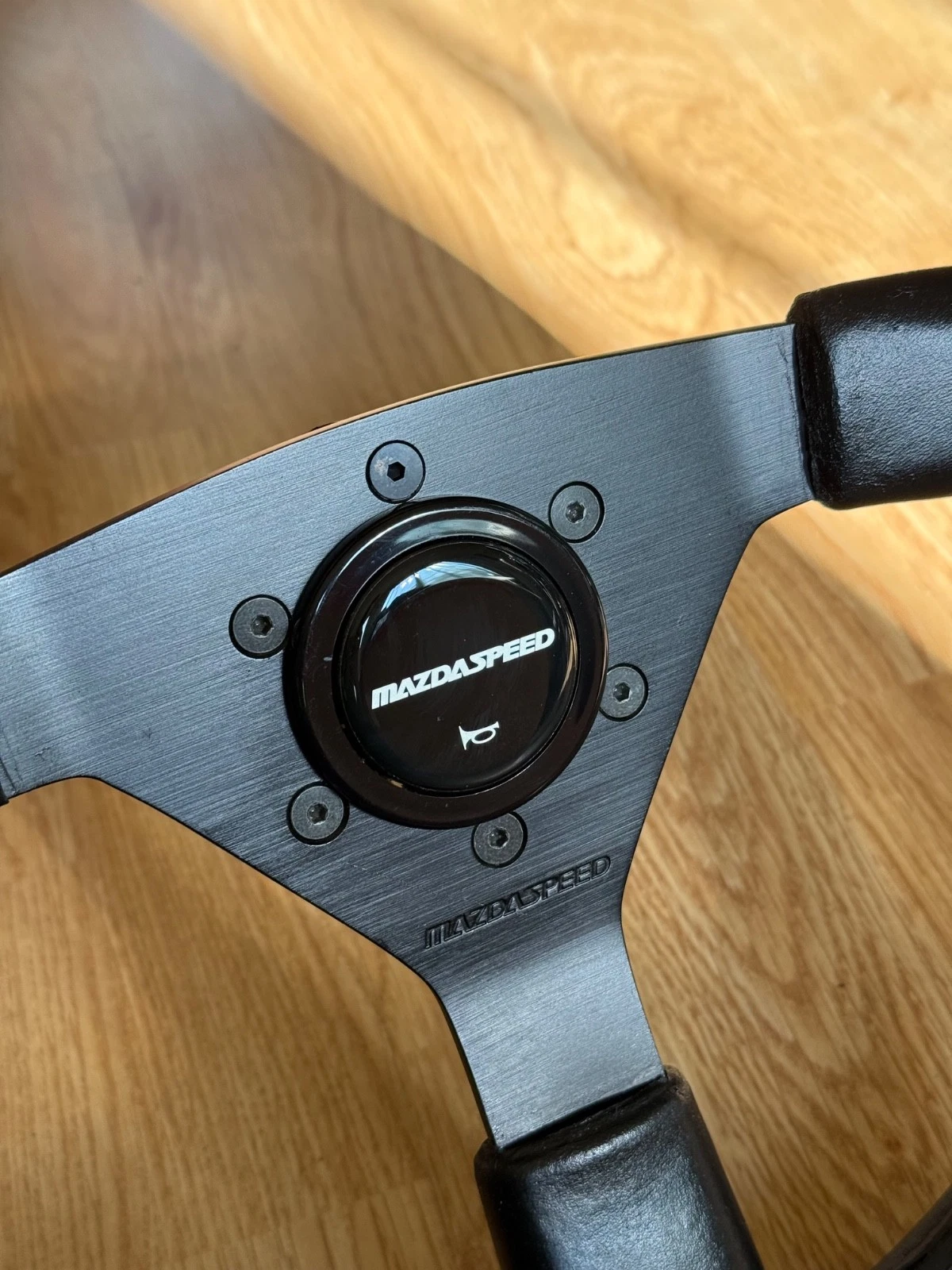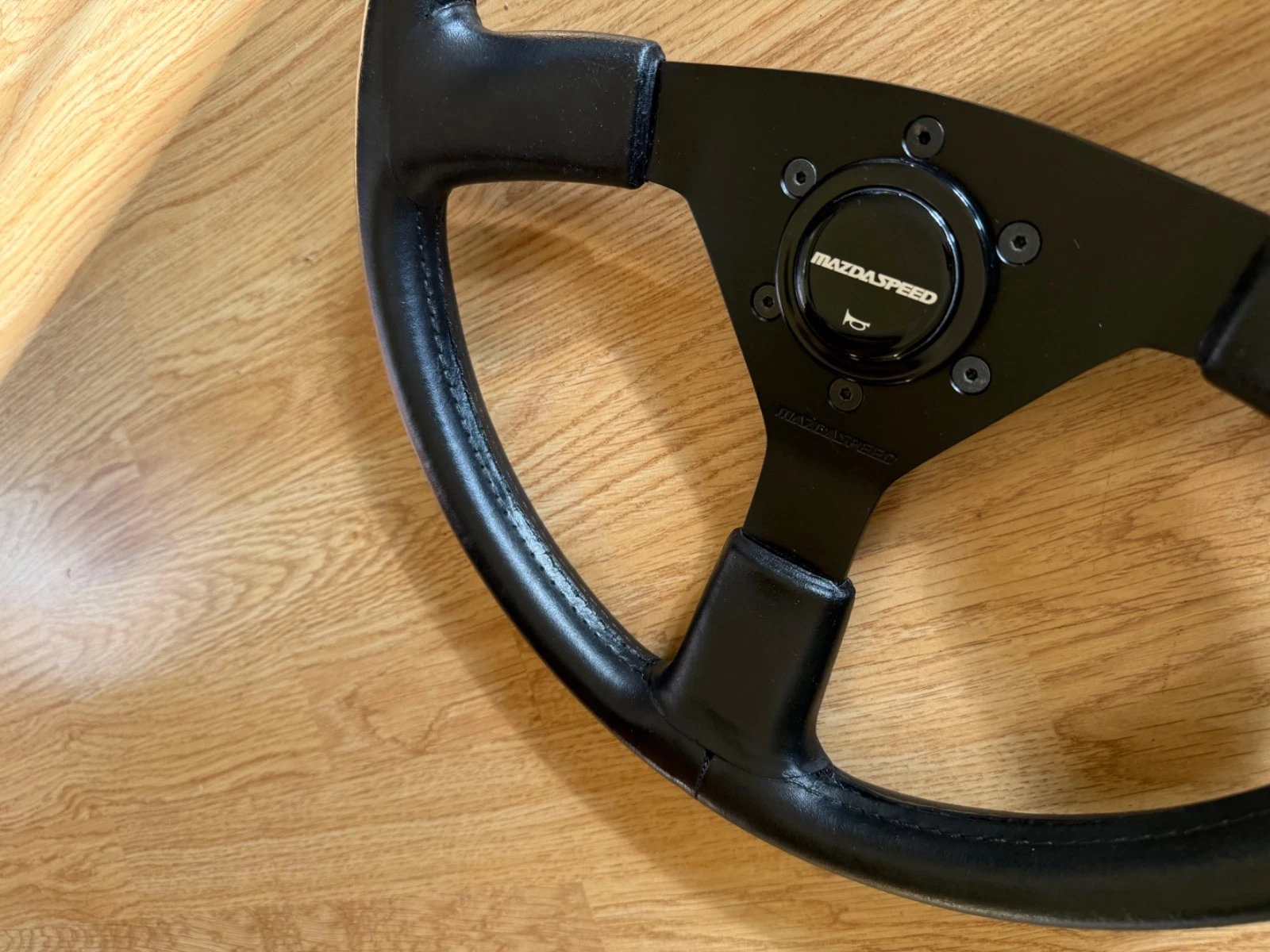 Rare mazdaspeed 365mm steering wheel with horn. Comes on a display stand can be taken off