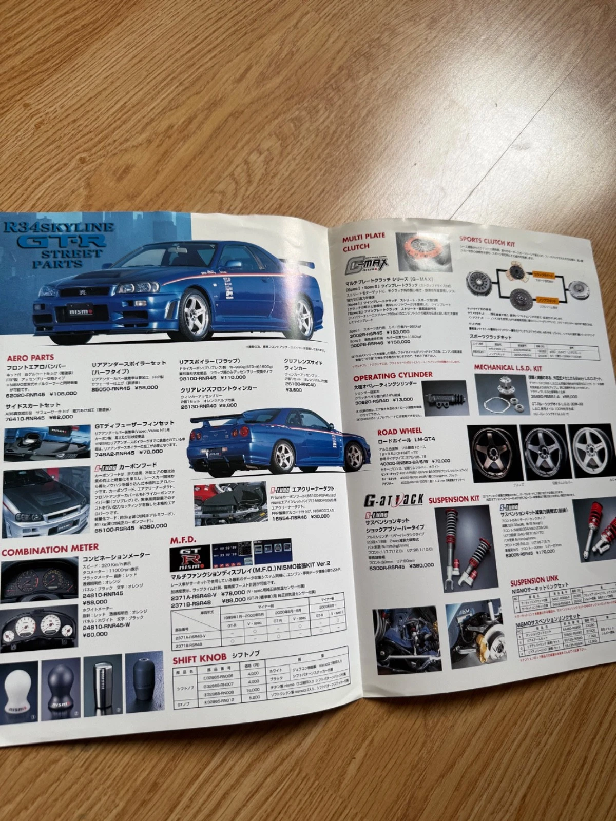 NISMO BROCHURE SKYLINE GTR R34 BNR34 MID LOGO RB26DETT WHEEL EXHAUST RARE SHIFT