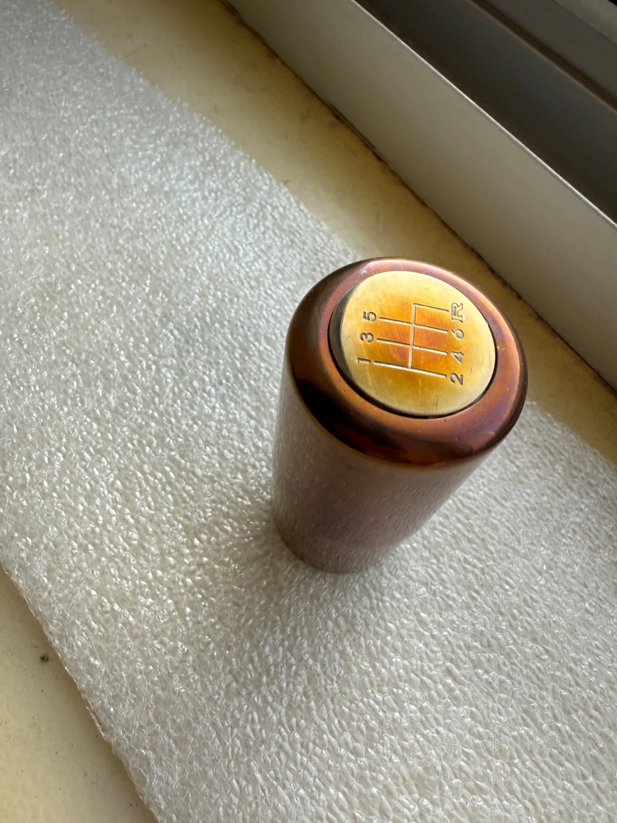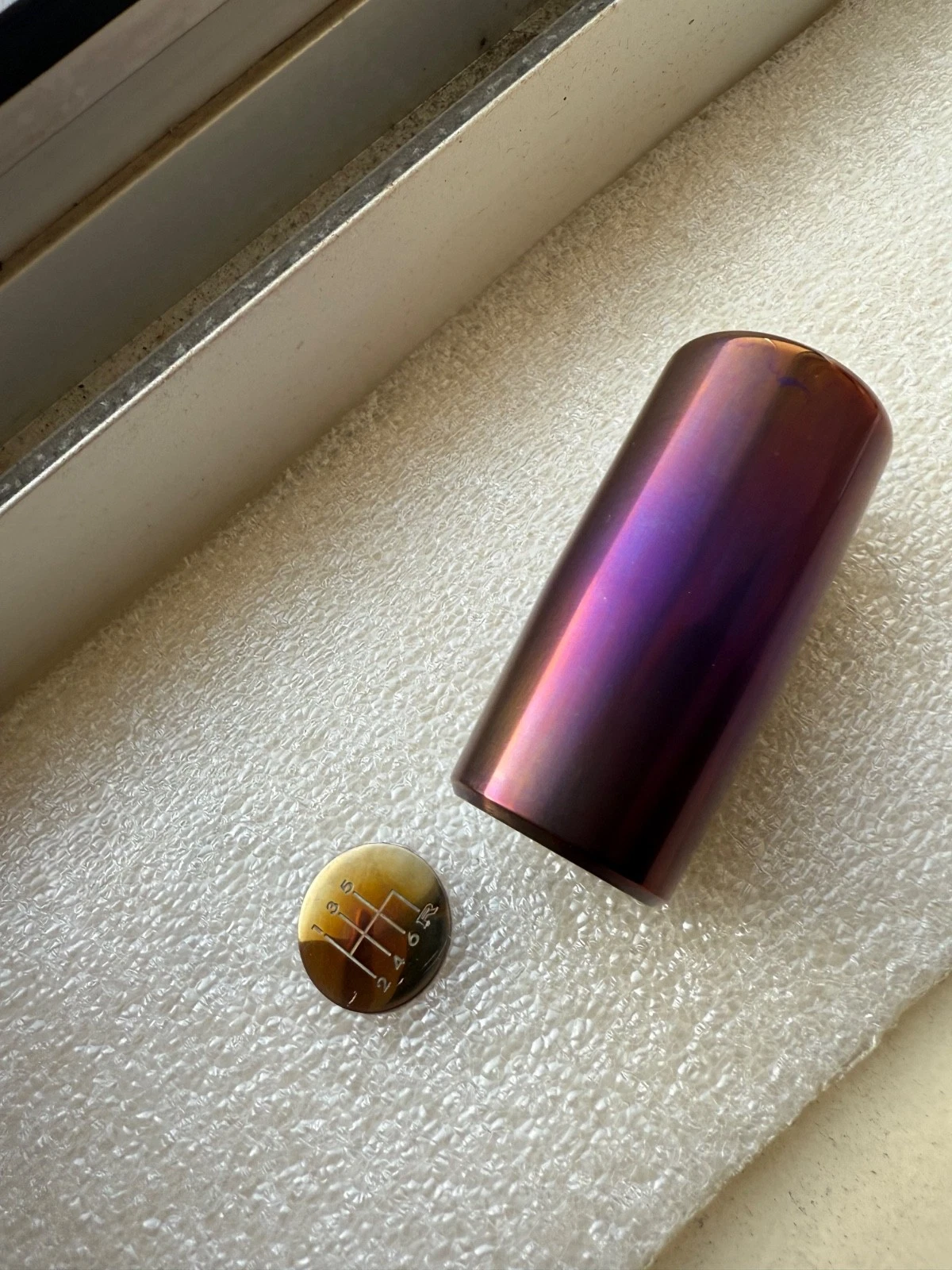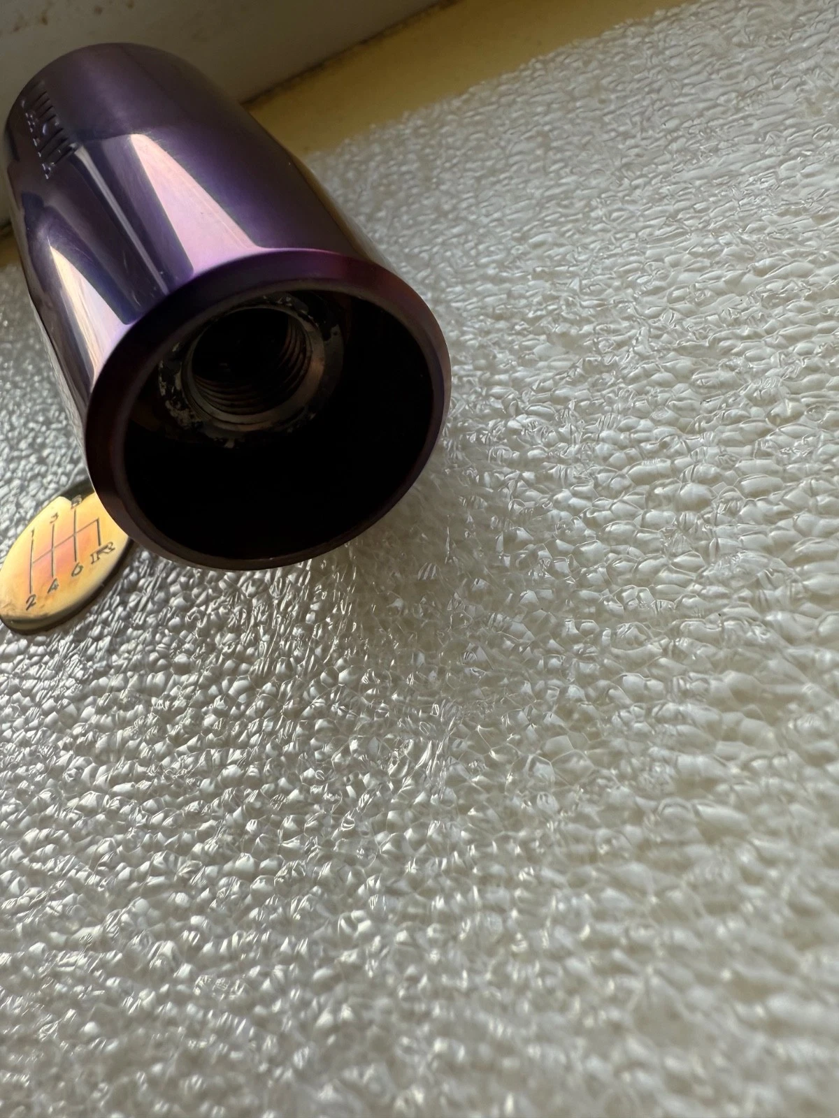 Rare mid logo burnt ti shift for R34/S15/Z34. Plastic shift incert bas been changed to titanium one. Medallion can be applied after install for correct orientation