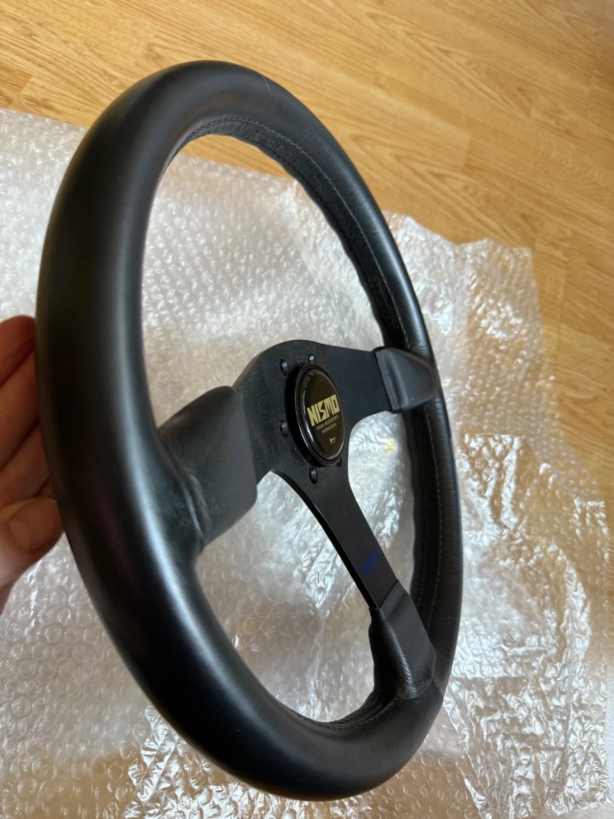 Nismo Old Logo 400r was never actually mounted see back and leather has one minor mark above horn. No box. Closest to new you will get these days