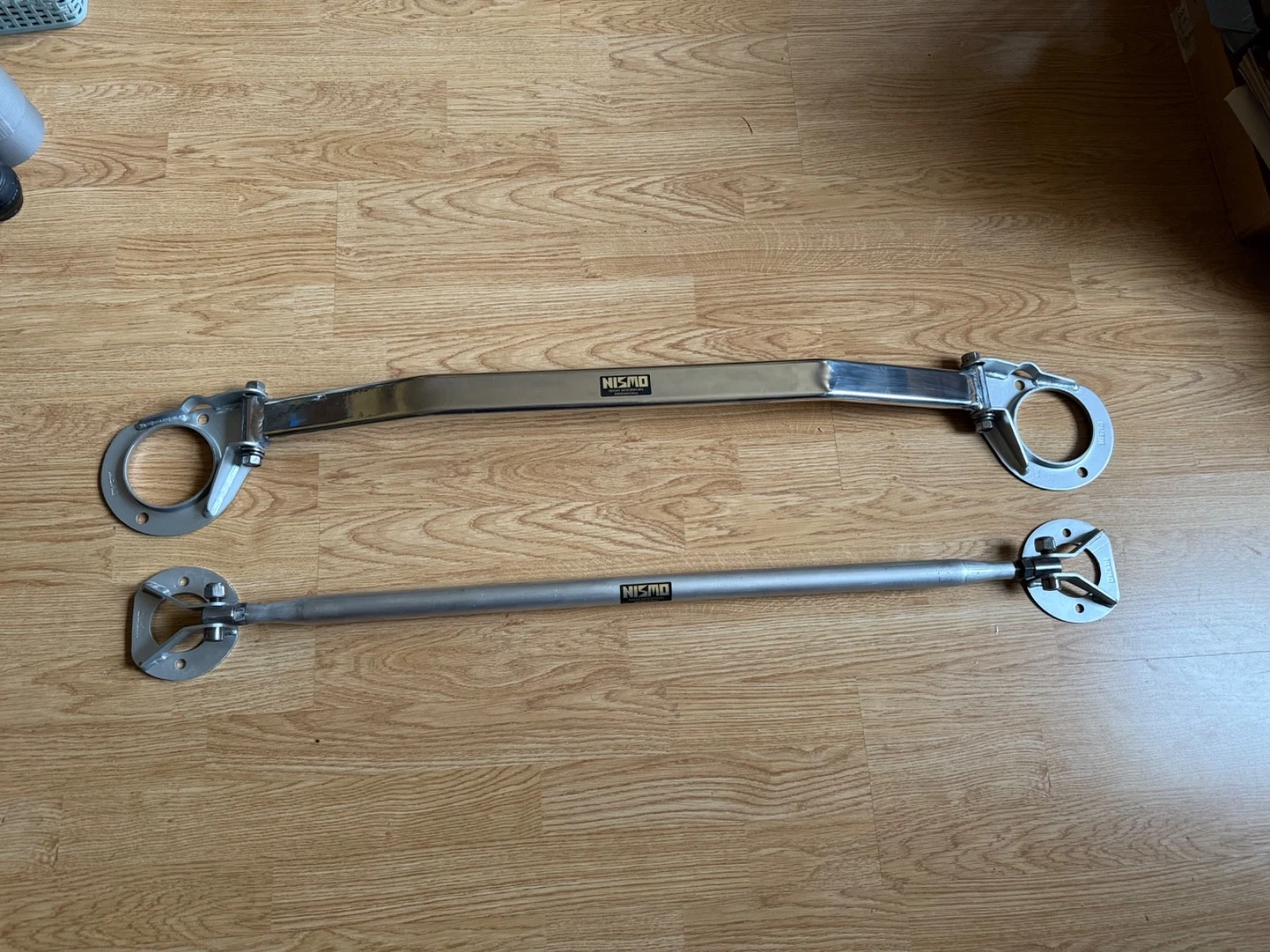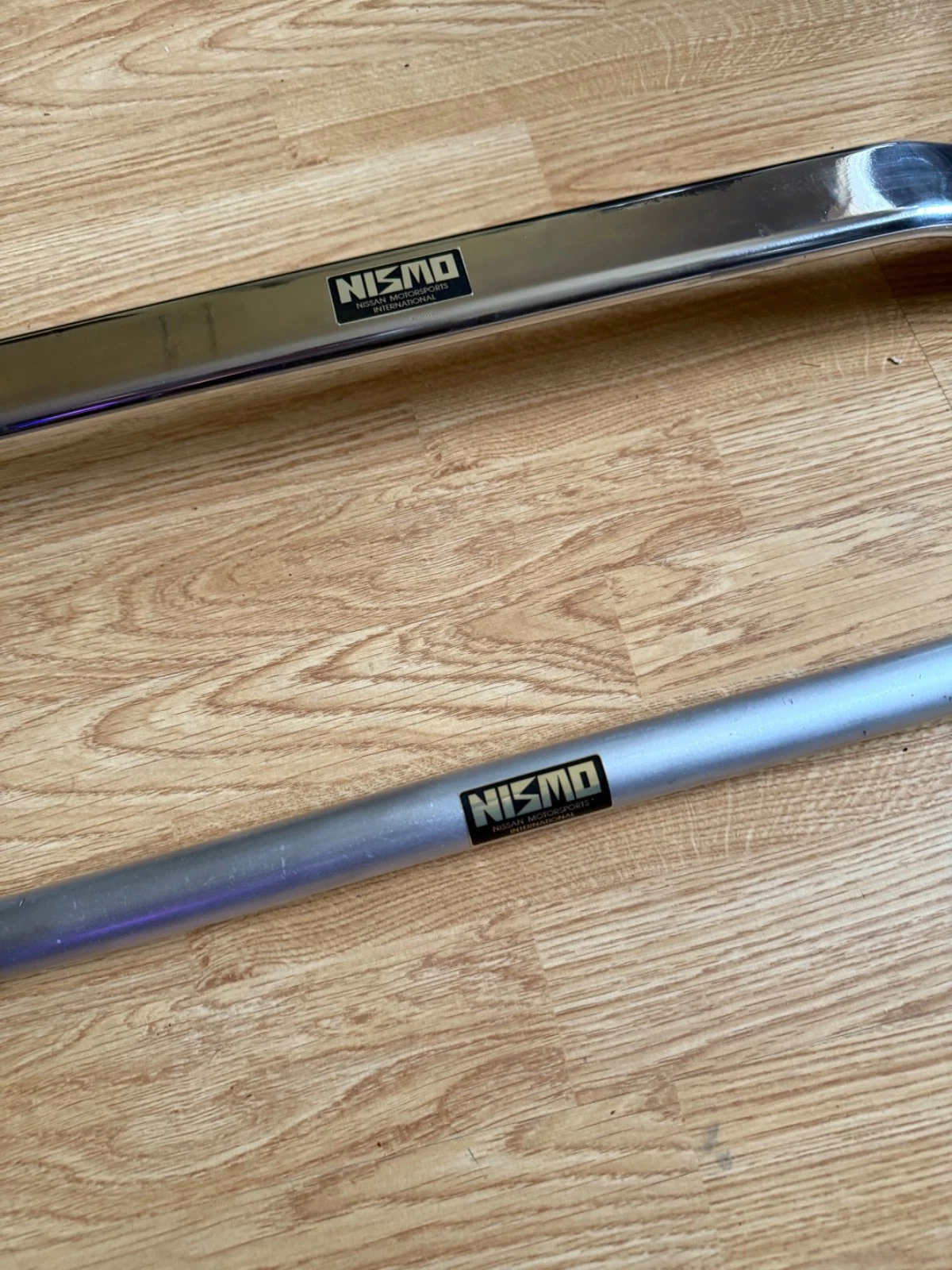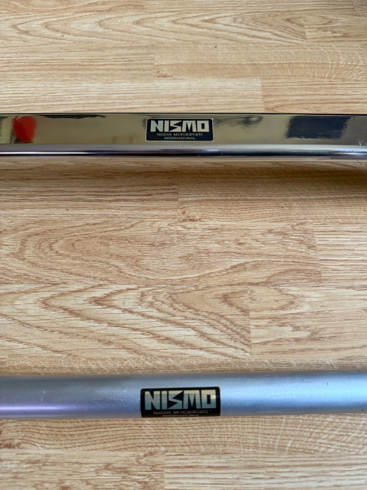 The ultimate strut bar set for any Skyline R32! Nismo old logo front + rear